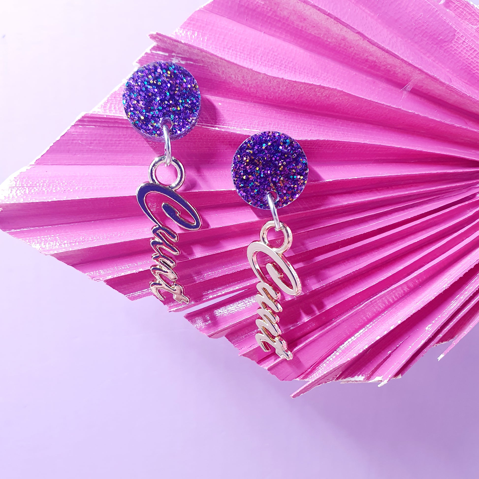 Glitter Purple & Gold Cunty Drop Earrings